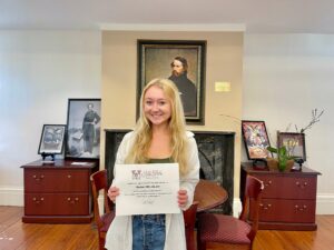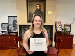 Mary Lightsey of the School of Education, Health, and Human Performance for Associations between Mental Health and Pandemic Experiences among Undergraduate College Students. Ms. Lightsey is majoring in public health and her Faculty Mentor is Dr. Leslie Burdett Hart ’03.